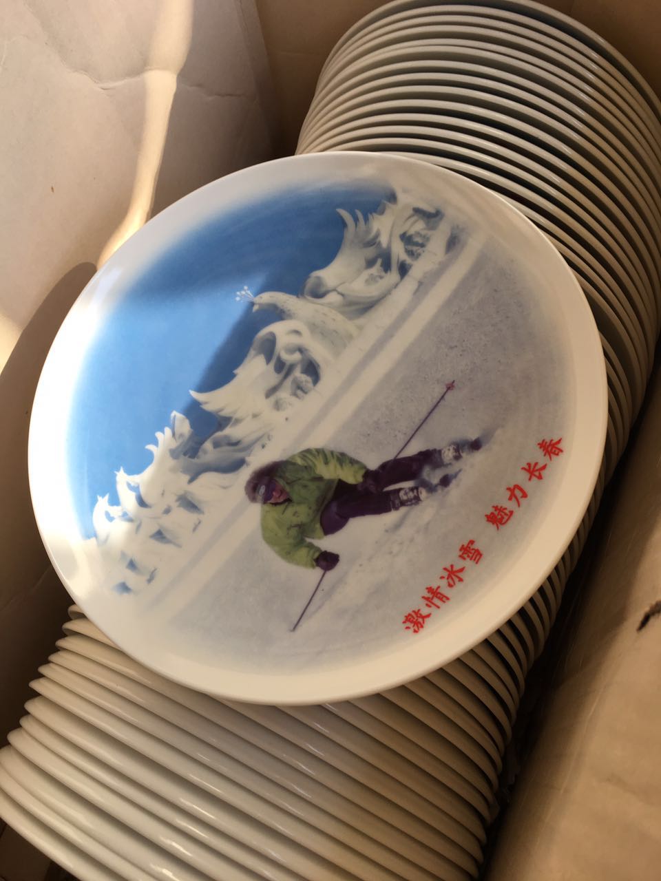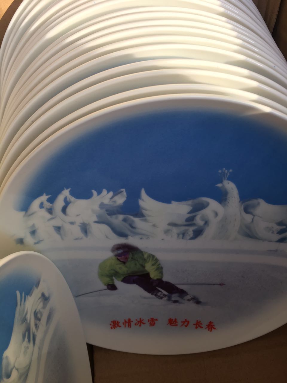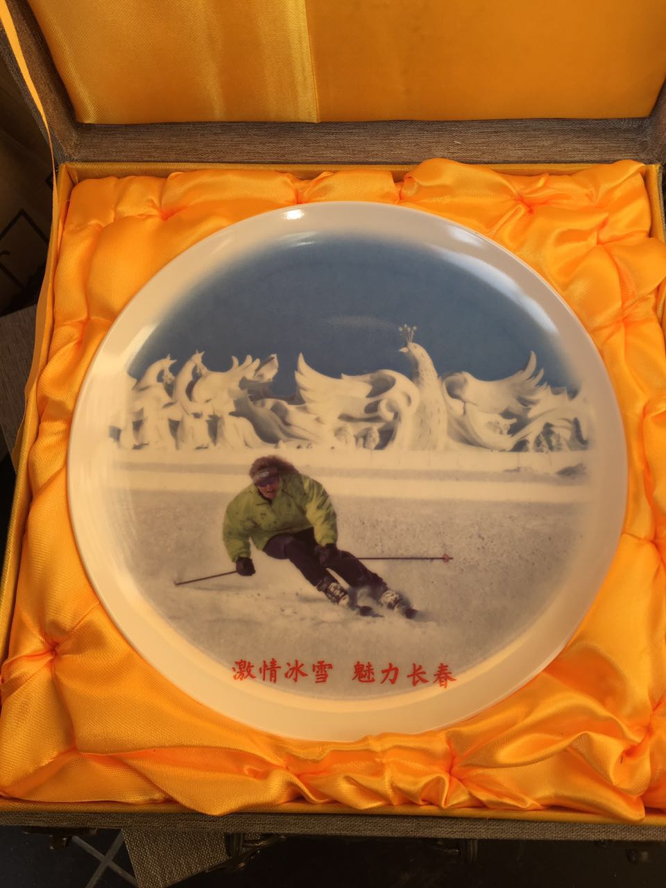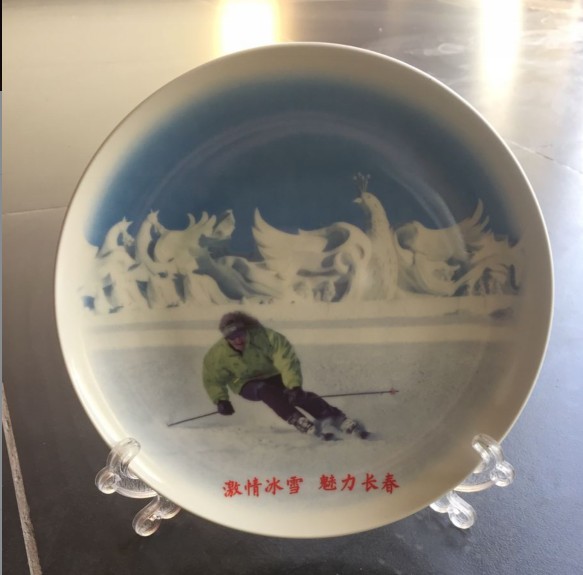 吉林長春旅遊局定製 創意手繪滑雪陶瓷紀念盤